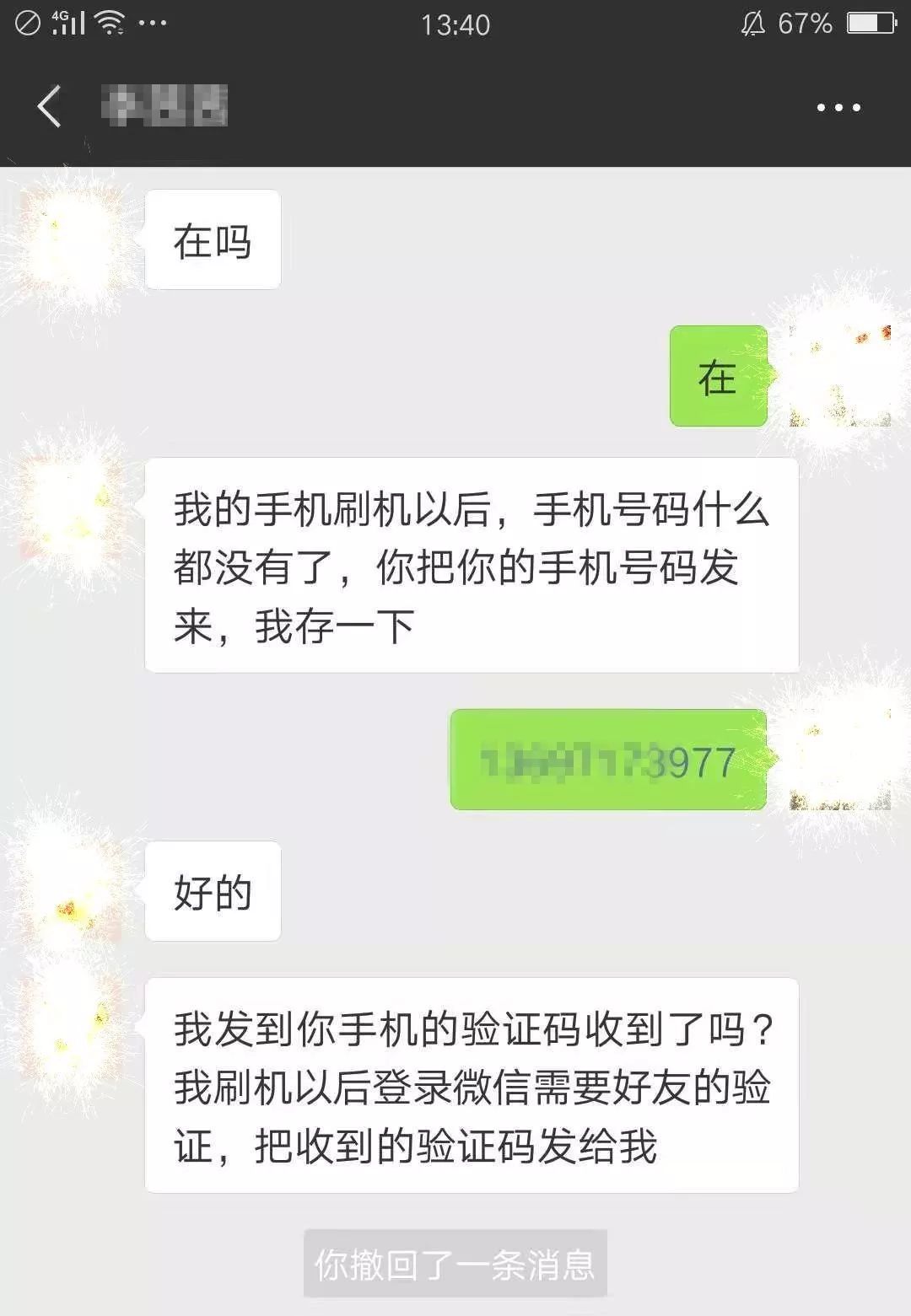 有些骗子更狡猾,假冒微信好友,说自己的手机刷机以后,电话号码都没有了,让你把你的电话号码发过来,发过去以后谎称自己的微信登录需要验证,又让你发短信验证码,就这样轻易就用你的手机号码完成注册或转账。