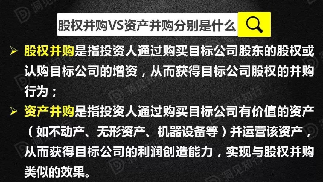 如果投资方感兴趣的是目标公司的无形资产、供应渠道、销售渠道等资源本身,采取资产并购。